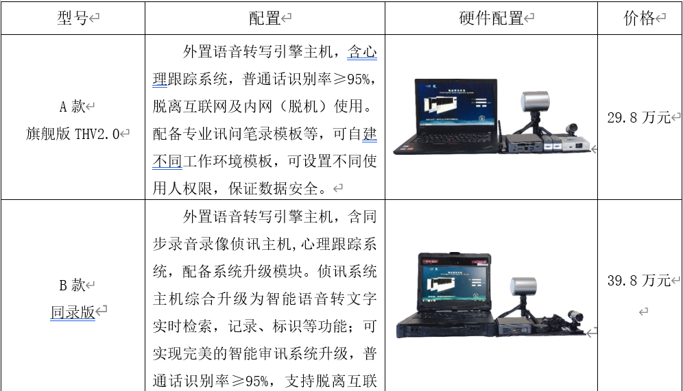 审讯笔录智能修正,全程跟踪被讯问人的心理变化;个性化词语配置,语音、文字定位查找,回放音视频;自动生成电子笔录自动标注及筛选敏感问题;结合智能语音系统实现高精度的音转文;设备体积小易于携带,简单易学。