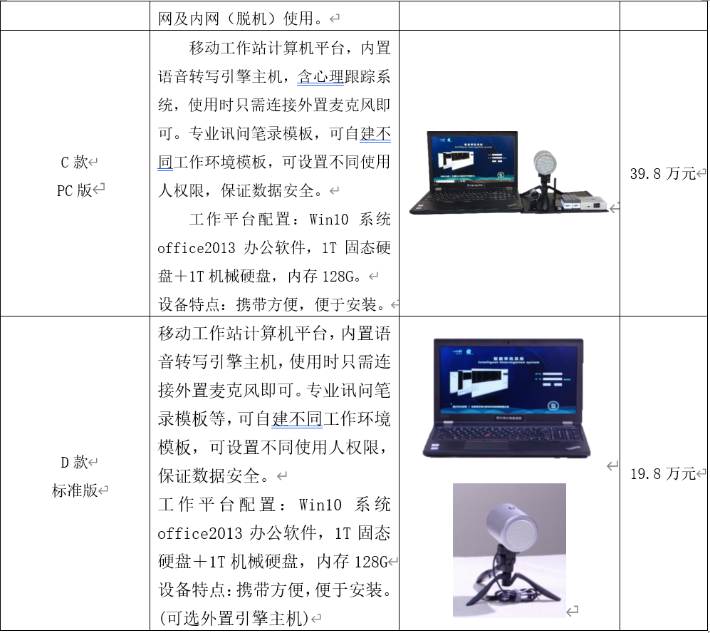 审讯笔录智能修正,全程跟踪被讯问人的心理变化;个性化词语配置,语音、文字定位查找,回放音视频;自动生成电子笔录自动标注及筛选敏感问题;结合智能语音系统实现高精度的音转文;设备体积小易于携带,简单易学。